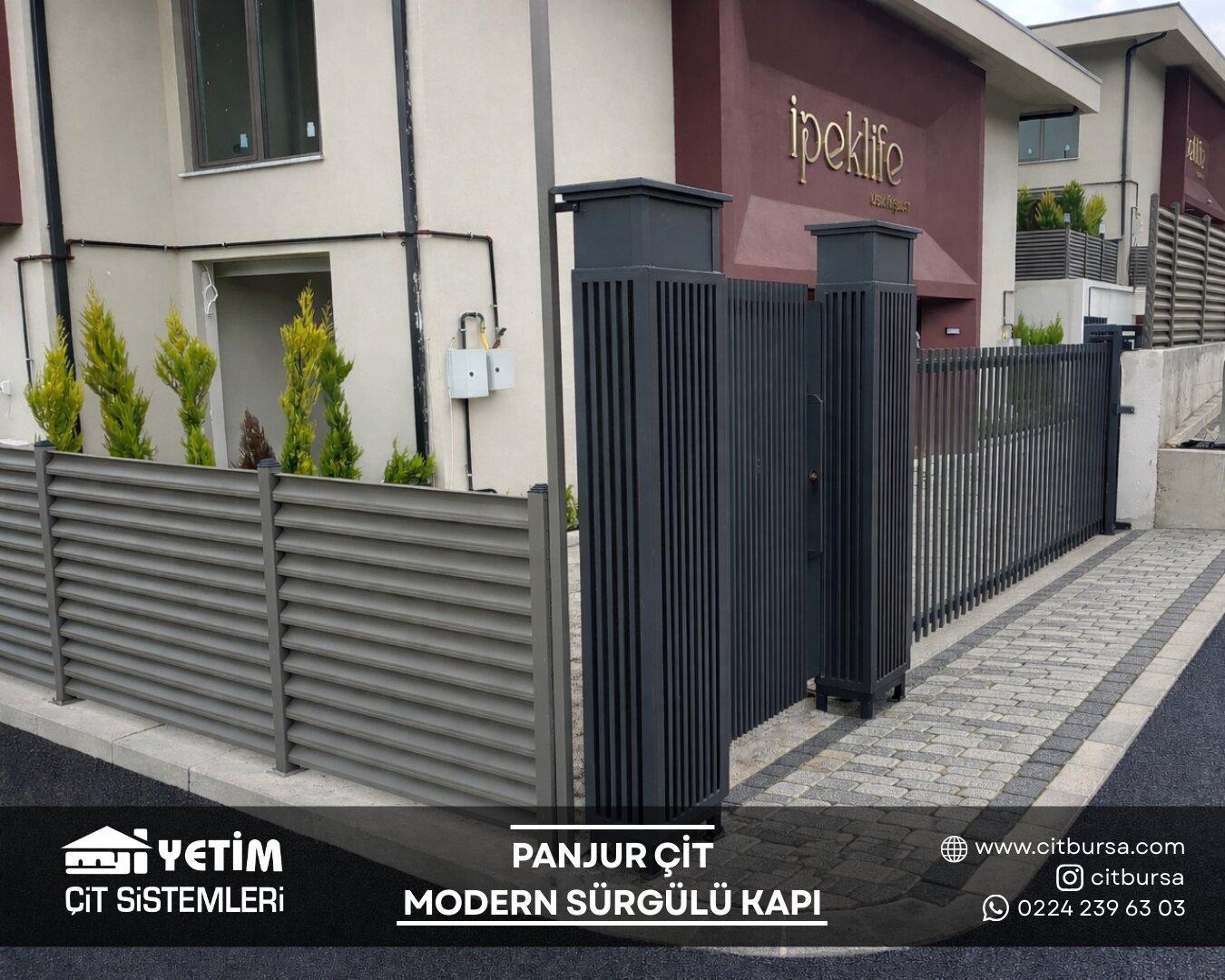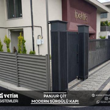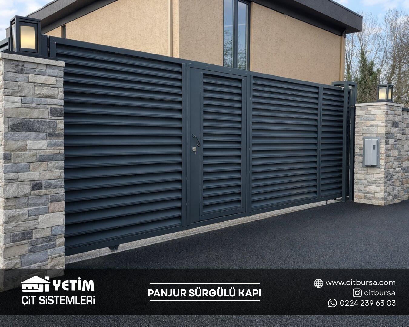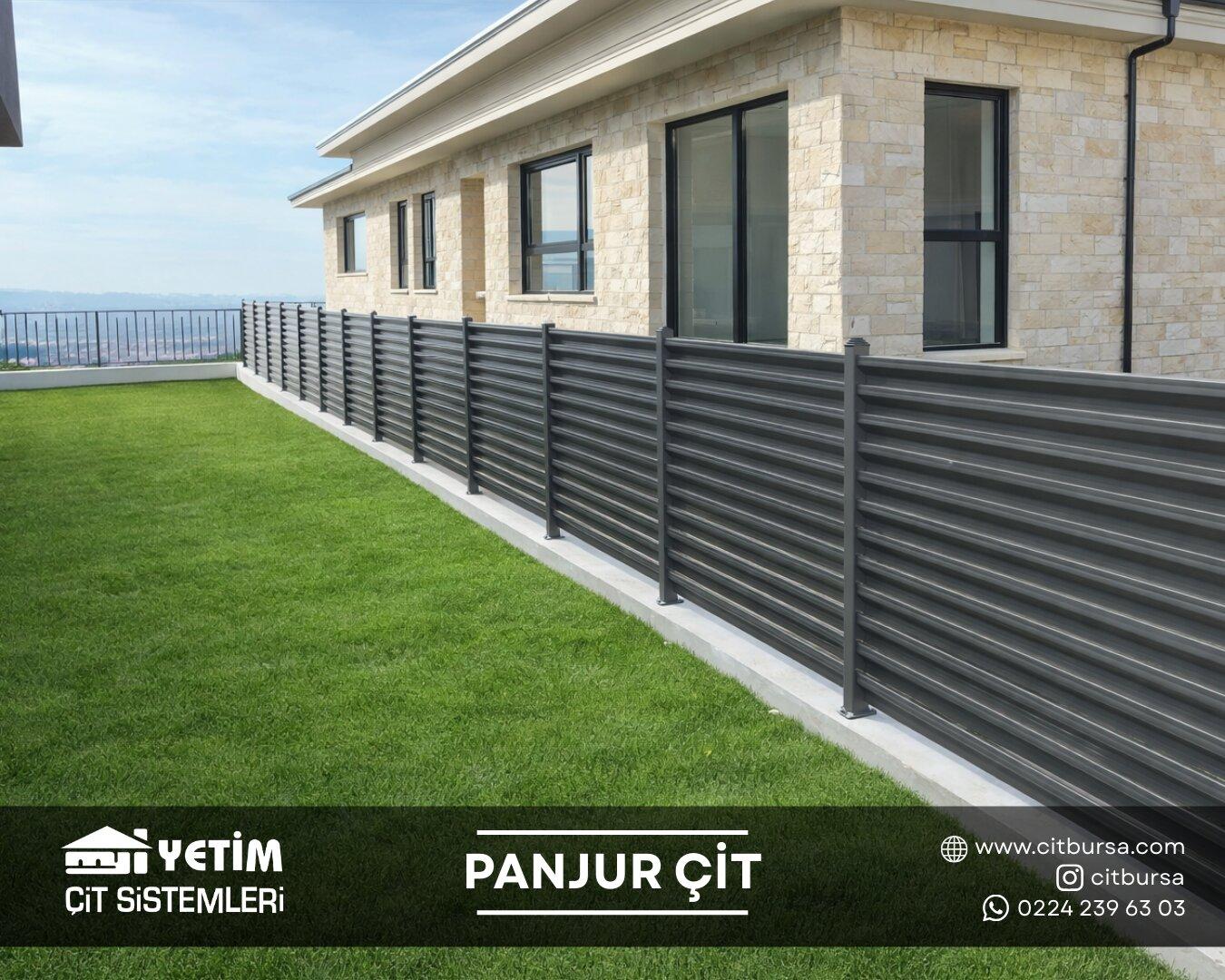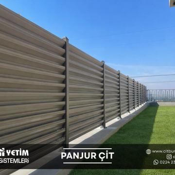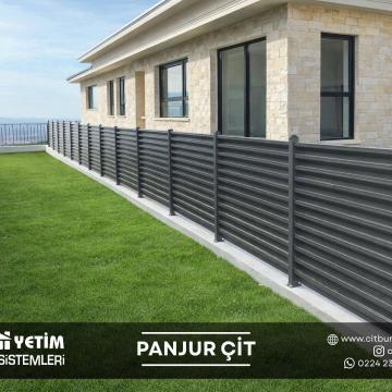 Panjur çit sistemleri, modern mimariye uyum sağlayan şık tasarımı ve güçlü yapısıyla yeni nesil çevre çözümleri arasında yer alır. Yatay lamel (panjur) formu sayesinde hem estetik bir görünüm sunar hem de alanın mahremiyetini artırır. Özellikle villa, site ve özel konut projelerinde tercih edilen bu sistemler, dış mekâna değer katan modern bir çizgi oluşturur.