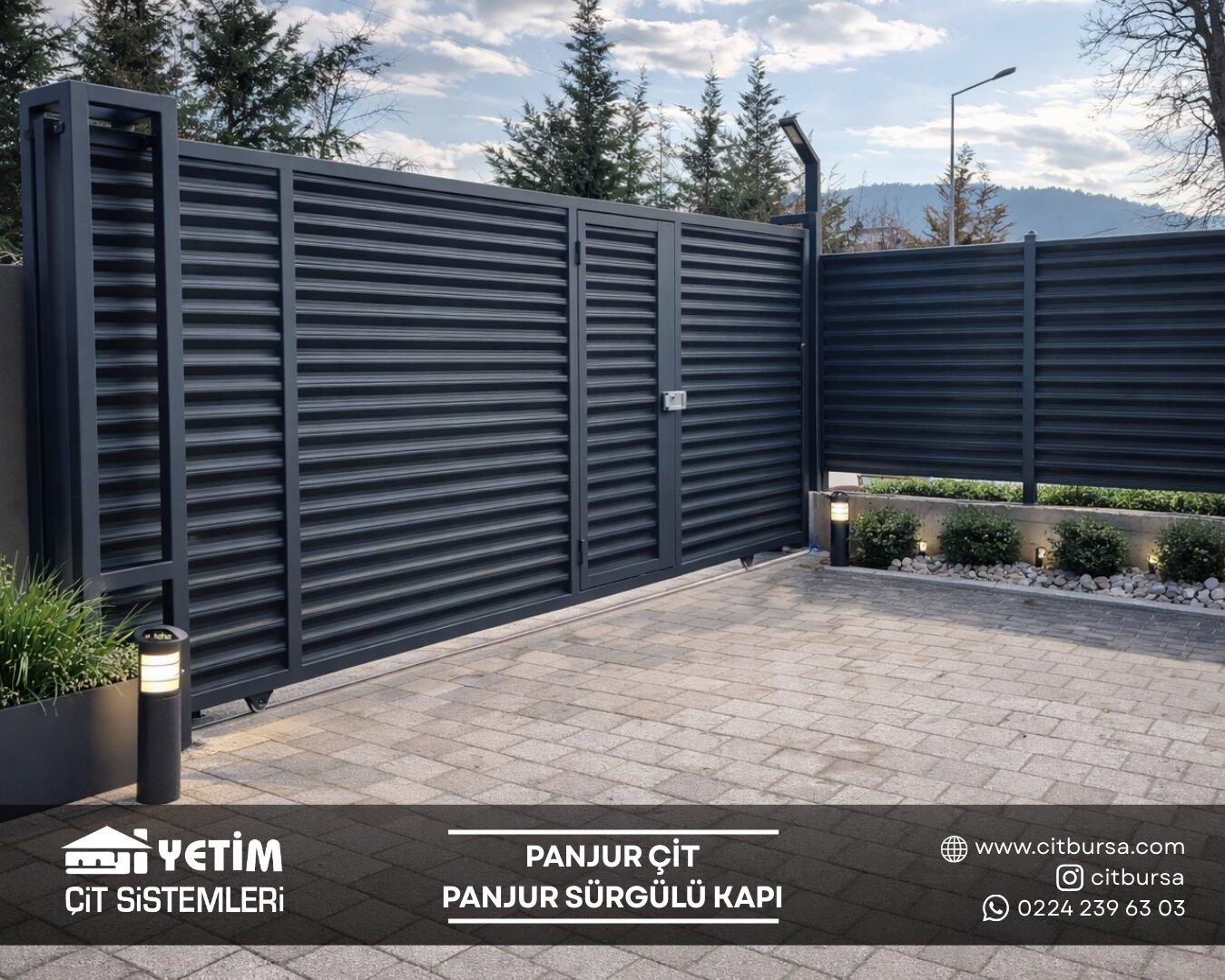Panjur çit sistemleri, modern mimariye uyum sağlayan şık tasarımı ve güçlü yapısıyla yeni nesil çevre çözümleri arasında yer alır. Yatay lamel (panjur) formu sayesinde hem estetik bir görünüm sunar hem de alanın mahremiyetini artırır. Özellikle villa, site ve özel konut projelerinde tercih edilen bu sistemler, dış mekâna değer katan modern bir çizgi oluşturur.